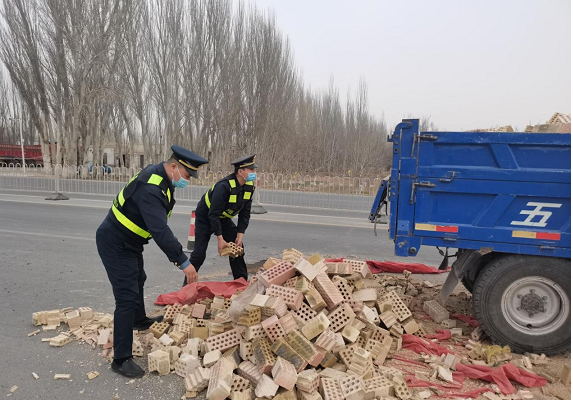 清风网讯(通讯员:阿迪力江·艾尼瓦尔)3月26日下午4时50分,库车执法大队执法人员在G217线K1085+500米处公路巡查时,发现公路行车道上洒落了一堆工地用砖。执法人员立即下车,迅速采取安全措施在车道前后摆放安全锥,组织人员对来往车辆进行交通疏导,维护现场秩序。经询问周边加油站人员了解到是由一辆农用三轮车因爆胎侧翻所致。随后执法人员跟货主联系得知翻车车辆在维修厂维修,当前暂无其他转运工具。刻不容缓,执法人员主动协调一辆周边车辆,协同当事人帮忙转运砖块,经过合力救助,车道上洒落的工地用砖被清理干净,及时消除了公路安全隐患,赢得了货主的好评。
