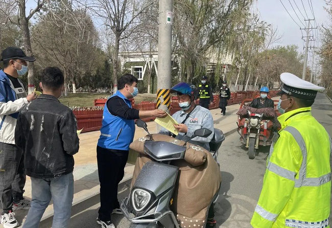 清风网讯(沙雅县公安局交通管理大队:司马义买合木提)为全力推进“一盔一带”安全守护行动,进一步净化道路交通环境,确保群众安全出行。4月6日,沙雅县公安局交通管理大队组织辖区外卖、快递企业开展“警企”联合劝导活动。