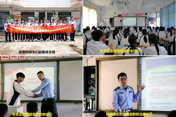 当天上午,授课民警在宁明中学开展国家安全教育知识讲座,深入浅出地对《国家安全法》、《反恐怖主义法》等相关法律法规进行了讲解,并通过列举“崇左边境管理支队2020年十大典型案例”以案释法帮助学生了解边境安全与国家安全的关系,认清妨害国边境行为的危害性,让学生们更深层次地认识到维护国家安全观念和遵纪守法的重要性。随后,民警还通过在现场知识竞答、解答咨询疑惑、教授防身技巧等多种方式,进一步为学生宣传讲解维护国家安全及人身安全防护等相关知识,激发了学生们对国家安全知识的学习热情,巩固提升了学生们的国家安全观念。最后,民警还组织学生一起在主题宣传教育的横幅上签名以表决心,时刻提醒自己:国家安全,人人有责。
