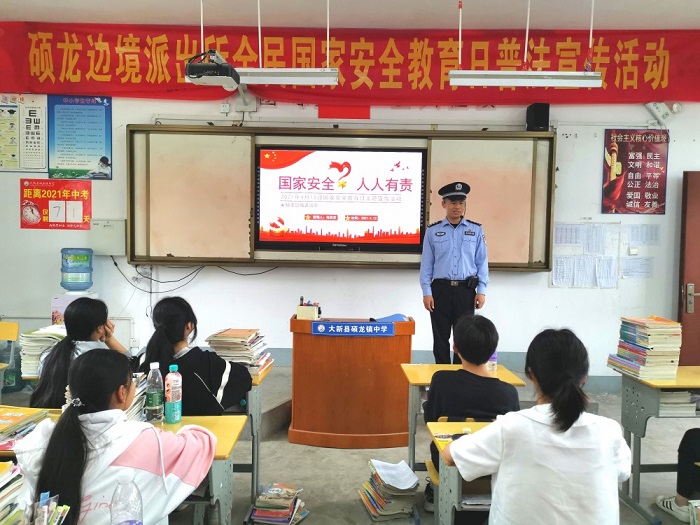 清风网讯(硕龙边境派出所:邹异发 袁金锋 石富云)为了进一步提高校园师生的安全防范意识,筑牢安全屏障,4月13日,在第六个“全民国家安全教育日”来临之际,广西大新边境管理大队硕龙边境派出所民警深入校园开展“全民国家安全教育日”普法宣传活动,为在学校师生开展一次国家安全知识讲课。