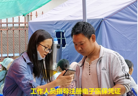 期间,镇社会保障服务中心工作人员现场设点,帮助前来接种疫苗的民众注册电子医保凭证,答疑解惑并耐心指导其如何使用。
