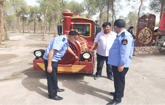 清风网讯(阿瓦提县市场监督管理局:玛热亚木·萨迪克 艾合买提)“六一”儿童节将至,针对“六一”期间公园和旅游景区人流量增加的实际,近日,阿瓦提县市场监督管理局对辖区内的3家旅游观光车和大型游乐设运营单位开展特种设备专项检查并约谈相关负责人。