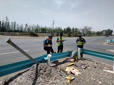 安全隐患大排查采取巡查与步检相结合的方式,重点对桥面、排水孔、伸缩缝、护栏和桥墩等部位进行排查,桥涵下是否有堆积物;路面标志标牌是否完好、路面有无破损;边沟排水是否通畅;上跨高速的地方道路的排水孔、安全防护栏以及两侧隔离栅损坏情况进行统计等。大排查中共派出执法车辆2车次,行驶历程426公里,派出隐患排查人员3人,共计排查公路附属设施损坏类安全隐患7处,向公路养护部门发出《国省干线公路附属设施维修整改告知书》7份,目前正在逐步整改到位。(柯坪执法大队:汤疆鹏、为力·买合买提)