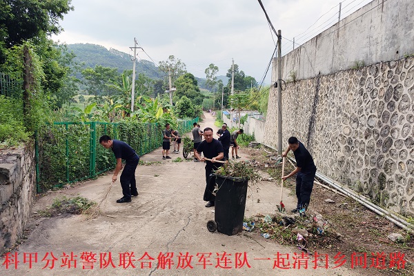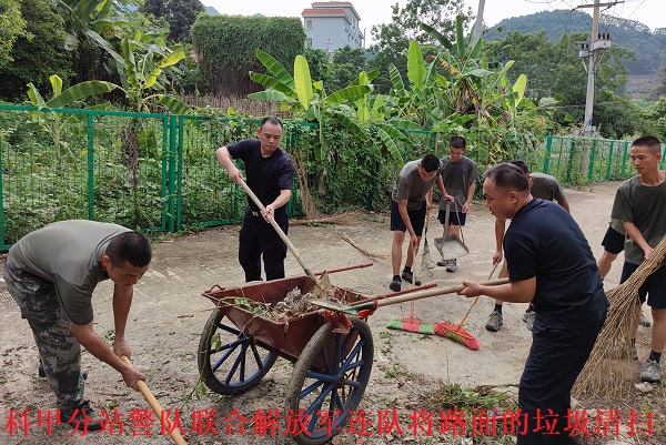 ——广西水口关出入境边防检查站科甲分站联合驻地解放军连队开展道路大清扫活动