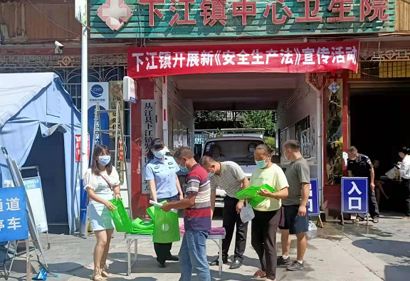 下江司法所利用赶集日开展新《安全生产法》宣传活动。通过悬挂横幅、现场讲解、发放宣传资料等形式向群众宣传新《安全生产法》知识,进一步增强了群众对安全工作的 认识,提升了群众安全防范意识。