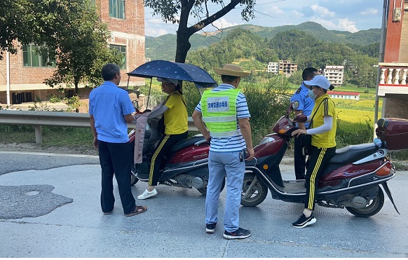 清风网讯(新邵县迎光乡人民政府:江涛、 彭中秋)9月4日,迎光乡党委委员、副乡长肖慈辉带领乡综合执法大队、应急管理办公室和派出所等部门工作人员在全乡范围内开展交通顽瘴痼疾整治“亮剑行动”暨“戴帽工程”集中整治行动。