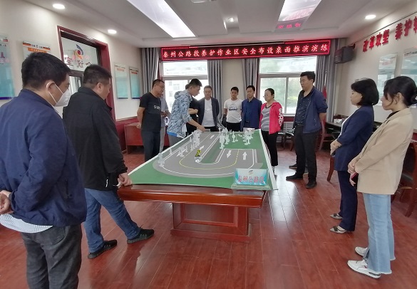 此次演练依据《道路交通标志和标线》规范展开,该段专职安全员通过桌面沙盘模型模拟讲解如何进一步规范养护现场安全作业区布设,按照交通运输部《公路养护安全作业规程》等关于养护作业区布设的相关规范,结合辖区各养护线路的设计时速、单车道小时峰值交通量、坡度等数据,综合确定养护作业布设间距,进一步完善作业区布设规程,保障公路养护维修作业人员、设备和作业区过往车辆的安全运行,规范养护作业的安全管理和作业行为。