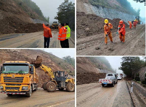发现险情后,该所紧急启动应急预案,立即组织25名应急抢险人员,2台装载机,2台自卸翻斗车,4台应急抢险车辆第一时间赶往现场,对塌方体开展清理作业。由于塌方体还不稳定,塌方路段又是大雾天气,抢险作业开始前,清理现场设置警示标志,布设好安全作业区,现场专职安全员观察山体情况和指挥交通,确保施工作业安全。同时在塌方路段秦安县和通渭县方向两侧分别设置安全警示标志,提醒过往车辆谨慎驾驶。经过连续2小时的紧张奋战,道路恢复半幅通行。后续该所将加大人员机械设备投入,铲除路面淤泥,疏通边沟淤积,彻底清理塌方体,预计10月12日18时,道路恢复双向通行。