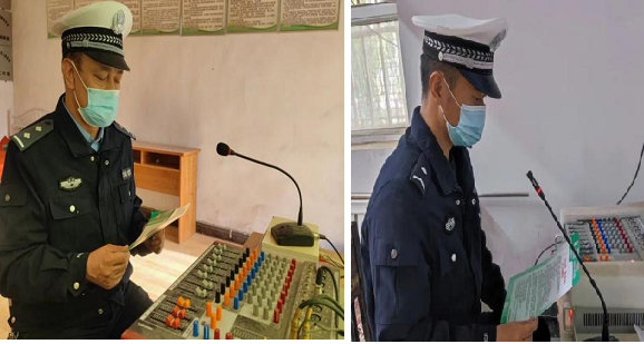 民警针对农村地区群众安全薄弱、文明出行意识不强、易发生事故的特点,结合当前交通安全形势,利用农村“大喇叭”向村民宣讲交通安全知识,详细讲解酒后驾驶、无证驾车、疲劳驾车、乘坐超员面包车、农用车、三轮摩托车、骑乘摩托车不戴安全头盔、驾乘汽车不系安全带等交通违法行为带来的危害和的后果,并采取“以案说法”的方式,宣传曝光交通事故典型案例,同时,教育引导广大交通参与者“遵章守法、安全出行”。