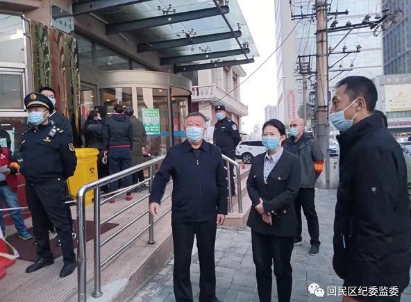 疫情防控的弦必须绷紧,疫情防控的措施必须严格实施。回民区纪委监委在已有纪委常委监委委员包联机制基础上,形成纪检监察室、派驻纪检监察组、镇(街道)纪(工)委和区委巡察机构干部合力,第一时间响应疫情防控命令,对回民区疫情防控工作迅速开展监督检查,全程监督、精准监督、有效监督,督促各级党组织认真落实主体责任,督促各职责部门切实做好职能范围内的应急防控及处置工作,对发现的问题及时督促整改。