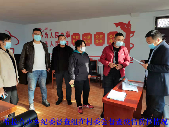 面对疫情严峻形势,为压紧压实哈拉合少乡疫情防控工作责任,加大疫情防控监督检查力度,有效阻断疫情流入基层乡镇,10月24日,哈拉合少乡纪委按照市、县关于疫情防控工作的部署要求,第一时间成立了疫情防控督查组,迅速深入全乡10个行政村及所属的厂矿企业、便民超市、卫生院等进行监督检查,按照“十个必须到位”的要求,督促各单位、各村委会坚守职责,科学防控,以强有力的措施坚决遏制疫情传播势头,切实维护好人民群众生命安全和大局稳定。