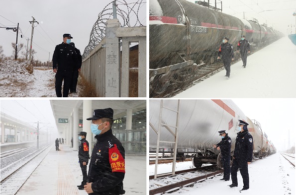 为确保列车运行安全,呼和浩特铁路公安处全面加强铁路沿线的巡视管理力度。乌兰察布、贲红、托克托东、兴和西等沿线派出所对桥涵和防护栅栏等部位进行检查,及时发现隐患,做到不留死角,全方位、全天候加强雪天线路的治安防控,全力确保铁路安全畅通。