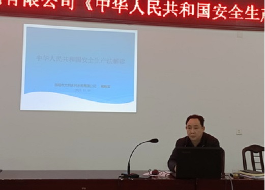 新《安全生产法》于2021年9月1日起正式施行,为强化企业关于安全生产的法律意识,使大圳水利水电全体员工认识到学习掌握新《安全生产法》的重要性和紧迫性,培训会上,公司总支书记、董事长戴晓军对新《安全生产法》进行专题解读,结合近期安全检查情况,他从新《安全生产法》释义、全员安全生产责任制、安全风险分级管控和隐患排查治理双重预防机制及案例分析等方面做了系统而全面的讲解。