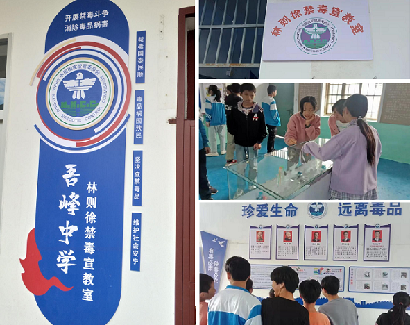为加强青少年禁毒宣传教育工作,充分发挥学校的禁毒宣传主阵地作用,近期,吾峰中学和吾峰南阳中学两所学校均建设了校园禁毒教育基地-林则徐禁毒宣教室。