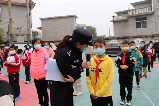 民警集中授课宣传结束后,为了检验学生是否真的听进去了所宣传的内容,派出所民警手拿话筒走进学生中间,随即询问了三名学生,没想到学生们都回答的全正确。