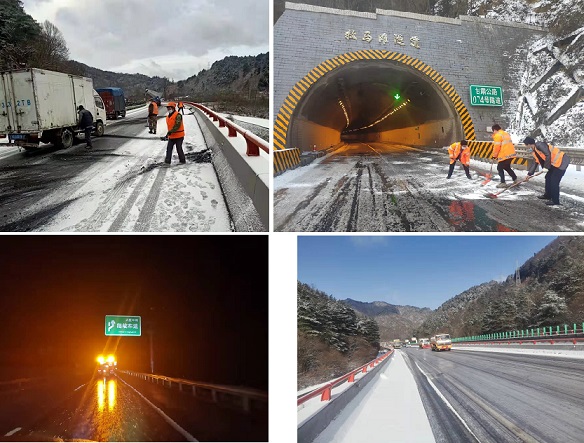 高速公路养护所按照“雪情就是命令”的工作要求,组织应急保畅人员、融雪剂洒布车、多功能除雪车,第一时间对积雪结冰路段进行打冰除雪作业。采取“机械除雪为主”的方式,并在特大桥梁、隧道口进行人工撒铺防滑料。重点对背阴路段、高海拔路段、易发生事故路段多频次除雪,在降雪前和雪中撒布融雪剂预防道路结冰,雪后机械清雪的方式进行作业。同时,与高速交警、收费等部门联勤联动,保障信息畅通,值班人员24小时坚守在一线,密切关注天气,及时采集、上报路况信息。