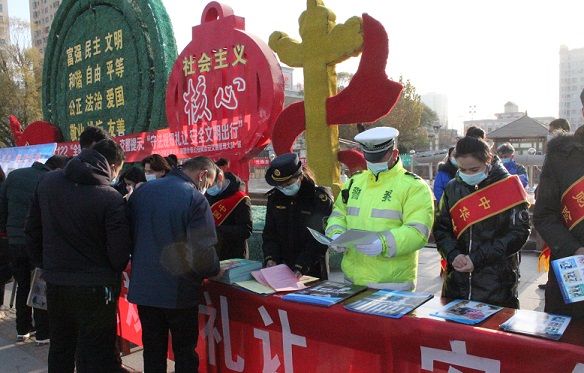 通过设置宣传台,摆放宣传展板,向过往群众发放宣传资料360余份,向广大群众普及了公路安全保护条例、超限超载治理、公路控制区管理、爱路护路公约、涉路许可事项、大件运输许可事项等公路交通安全法律法规,更广泛、更深入地向社会各界和广大群众传播现代文明交通理念、弘扬法治交通精神,教育引导广大车主用户、社会各界群众做公路安全出行的参与者、践行者、推动者,进一步提升司乘人员的交通安全意识和文明出行意识。