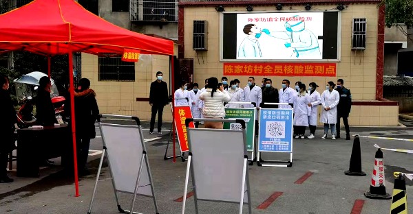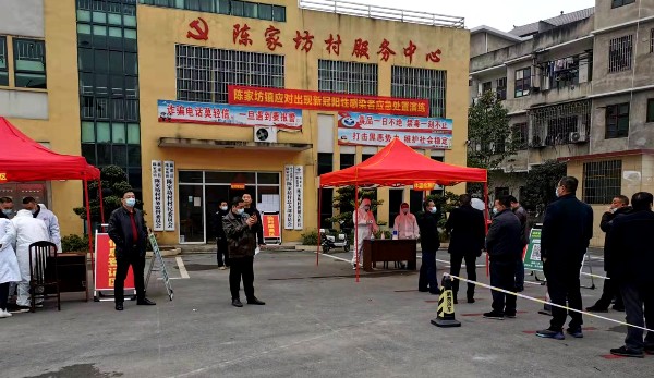 演练开始前,该镇对演练做出了精心安排和部署,明确演练的流程及各自分工,并把各个环节的工作要点作了详细说明。本次演练模拟陈家坊村居民中出现一例感染来源不明新冠肺炎确诊病例或无症状感染者,接到指令后,该镇疫情防控指挥部立即召开会议,宣布启动应急响应,并要求综合协调组、人员保障组、应急维稳组、后勤保障组、信息宣传组各尽其责、各履其职,迅速处置好这起突发事件。演练过程中,群众有序排队进入场地,明确采样流程和注意事项,保证人员单向流动,落实“1米线”间隔要求,严控人员密度。镇、村部分干部穿着专业防疫工作制服进行体温测量,佩戴口罩,体温正常才能进入,并做好跟踪记录。