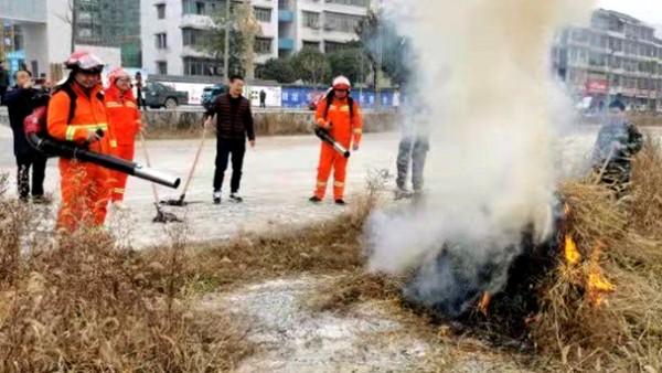 本次演练地点选择在镇政府新大门前的一片空坪进行,在确认四周无安全隐患后,演练人员点燃杂草,火势迅速蔓延。火场内,应急小分队成员迅速行动,配合默契,扛上打火鞭、吹风机等灭火工具率先扑灭明火,阻断火势……经过十几分钟扑救,大火全部被扑灭。最后,工作人员对现场进行清理,防止死灰复燃,实战演练达到预期效果。