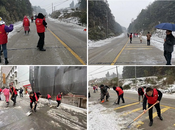 在这次应对低温冰雪天气中,该镇新时代文明实践所组织各村志愿者对村内所有独居老人和留守儿童等人员一一开展“敲门”行动,提醒群众用火用电取暖、出行安全,重点关注困难群众、留守老人和儿童等,做到户户走访、人人见面,切实保障人民群众生命安全。并对村内危险路段开展专人值守和设置警戒线等志愿服务活动。