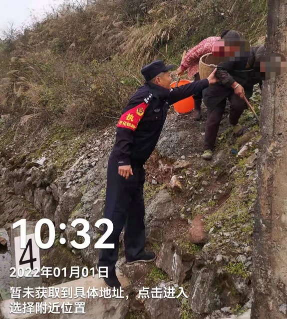 上午10点32分,在焦柳铁路k1180+500m处黄金坳站至象鼻子站间,正在线路上巡查的该所民警周海军突然发现,有两名老人从铁路边的坡上翻越排水洞弯着腰走下铁路,准备穿越铁路。周海军将两位翻越的老人扶着走下后,对老人进行了《铁路法》有关条文的宣传,告诉她们穿越行走铁路是违法的,更不利于自己的人身安全。准备穿越铁路的两位老人听了和蔼可亲的民警的宣传后,原路返回改走大路。