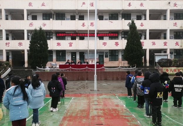 清风网讯(从江县东朗镇中心小学:潘正权)1月17日,东朗镇中心小学全体师生在学校操场举行了2021-2022学年度第一学期散学典礼暨寒假安全教育会议,该校600余名师生及部分学生家长参加了会议。