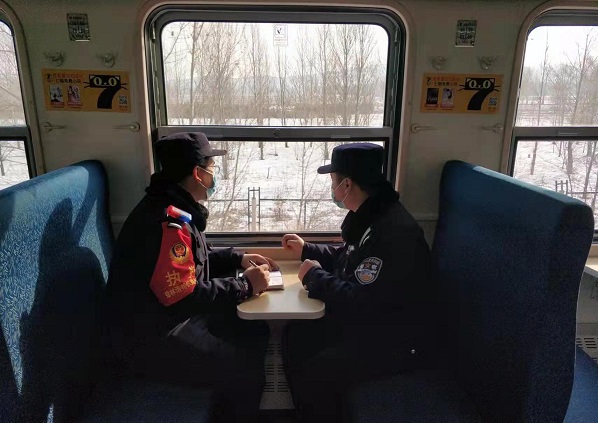 清风网讯(通讯员:班林杨)为全力保障北京2022年冬奥会安保期间辖区铁路治安秩序稳定,确保管内铁路运输安全,近日,锡林浩特铁路公安处多伦车站派出所针对管内降雪实际,组织民警通过添乘铁路职工通勤列车的方式开展铁路沿线安全巡防工作。