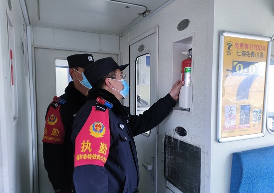期间,民警仔细查验了乘车职工的工作证件,并对通勤列车进行了消防安全检查,详细查看灭火器等消防设施设备的配备使用情况,督促列车工作人员严格落实安全防范措施。同时沿途通过瞭望的方式对线路两侧进行安全巡查,对发现的线路安全隐患,认真做好记录,督促铁路相关部门整改。