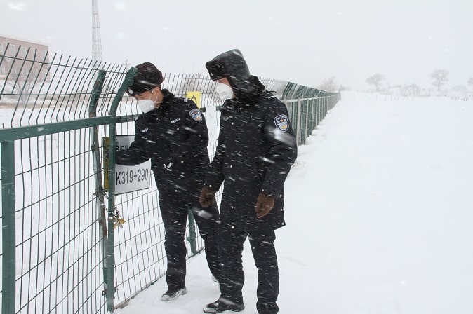 雪花弥漫,脚步铿锵。民警迎难而上,徒步进入汽车无法驶入的区段认真检查铁路防护网,踏雪排查线路隐患,全力确保铁路运输安全。(通讯员:王新龙)