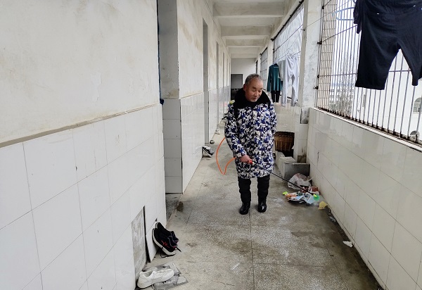 红安大赵家高中开展消毒消杀工作