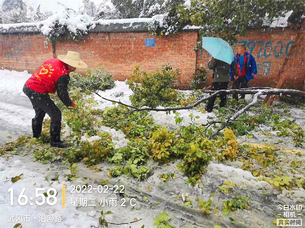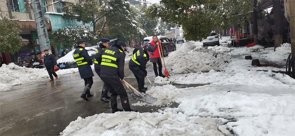 2月22日下午至23日,武冈辕门口街道以雪为令,迅速安排部署,积极带领所有街道办事处干部、执法大队、城管、派出所、农业服务中心等志愿者500余人到村、组、小区开展扫雪除冰行动,浴“雪”奋战,坚持在清雪***线。全力以赴做好道路积雪结冰清扫工作,温暖了群众的出行路。