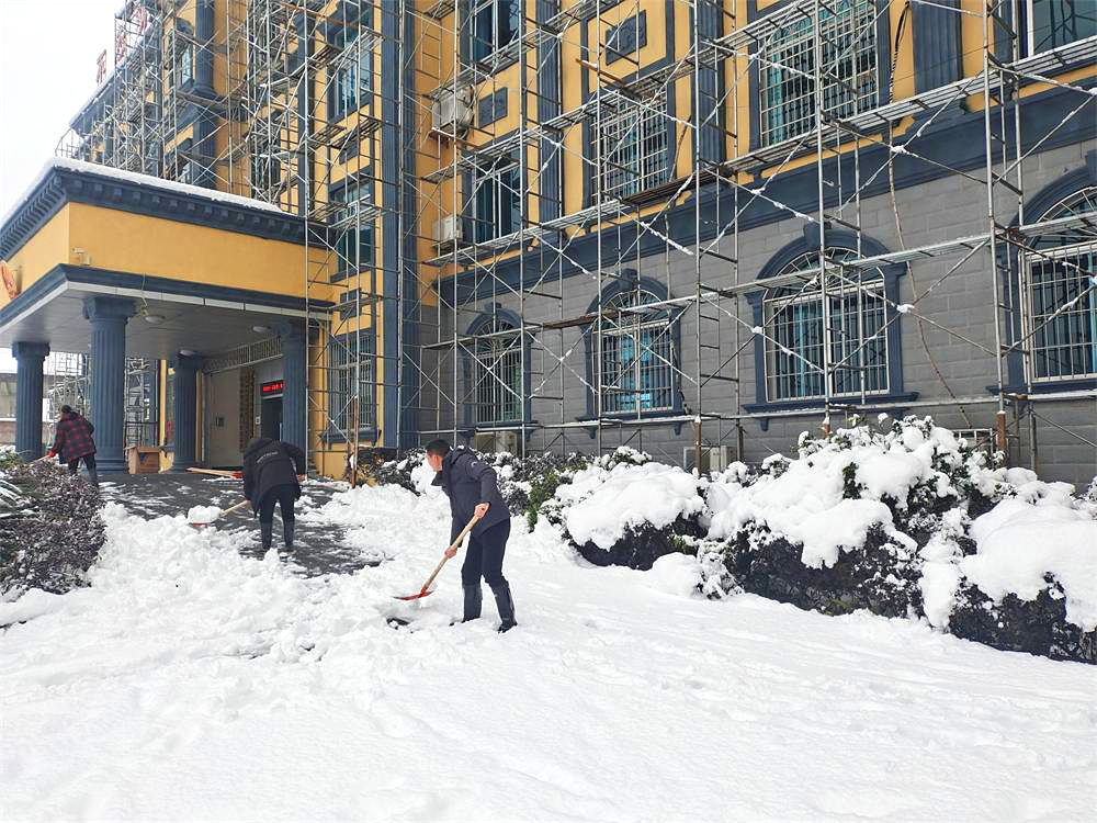 湖南武冈湾头桥镇志愿者扫雪为群众出行“清道”
