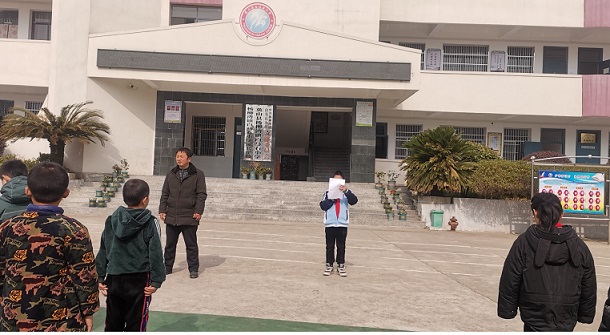 课间操后,学校少先队员代表以一篇题为《校园安全,从我做起》的倡议,呼吁全校同学们:上下楼梯时不拥挤;在走廊上不追逐打闹;课堂上集中注意力,保持课堂高效率;餐厅用餐保持安静等系列安全活动建议。继续把2月的行为习惯要求:安安静静,干干净净,八字活动认真做好,保持在任何场所要轻声慢步,把良好的行为习惯发扬下去。希望同学们通过“小手拉大手”,把安全知识传达给自己的父母、爷爷奶奶。鼓励家长积极扎实配合学校安全工作,共同创建:文明、和谐、平安校园。