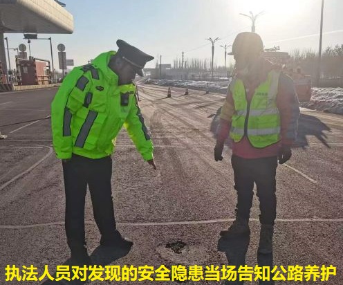 巡查过程中,执法人员与公路养护部门技术员对沿线公路路面、公路附属设施、桥梁、涵洞、标志标线等进行了全面细致的检查,并对临水临崖、急弯陡坡路段进行了重点排查。对排查中发现的安全隐患问题,通过采集照片、建立台账的方式,形成安全隐患清单,分轻重缓急,明确整改责任,及时跟进公路养护部门限期整改,切实做到发现一处,督促整治一处,形成多部门联动排查治理安全隐患的长效机制,打赢公路交通安全隐患“歼灭战”。