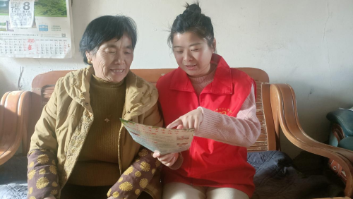 “阿姨,您好。咱们这有没有人安全生产非法违法行为的?如果有的话请向连队党支部报案或拨打举报电话4696070”这是《安全生产宣传单》,里面有日常家庭用电、用气安全、用火安全知识及如何正确预防一氧化碳中毒知识,可以带家里的孩子一起学习”。
