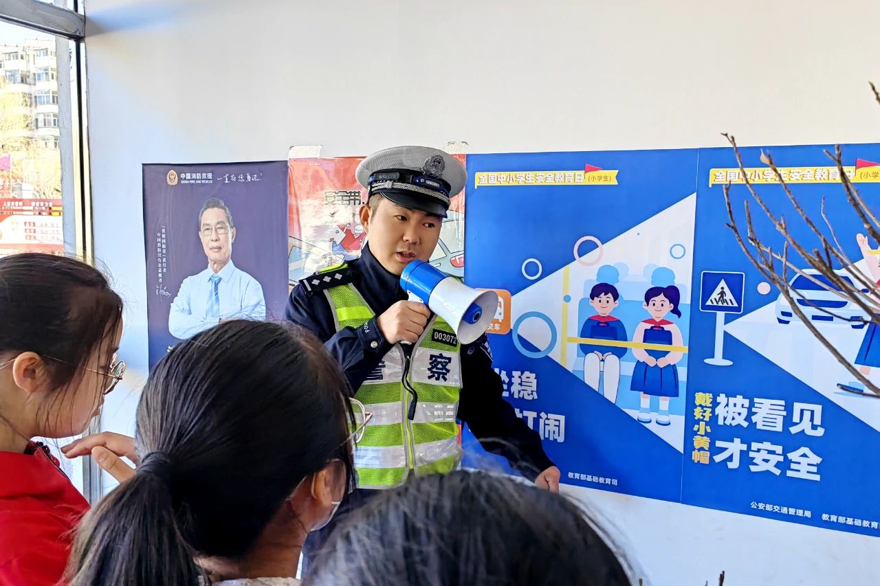 三大队民警走进辖区沿线大营小学,开展道路交通安全宣传主题宣传活动。活动中,民警通过交通安全常识讲解、发放宣传资料、与学生开展互动问答的形式,向学生们灌输交通安全知识,切实提升了学生们的安全出行意识。