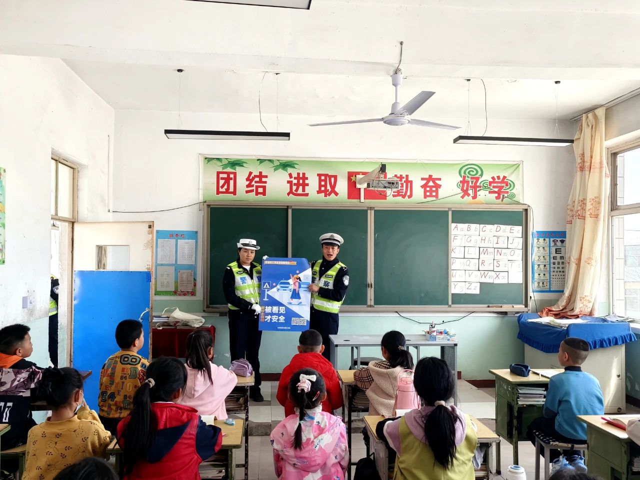 二大队民警走进代县上馆镇东关小学,以“知危险 会避险”为主题,开展道路交通安全宣传教育活动,通过课堂讲解和室外互动,使小学生增强自我保护能力,提高安全防范意识,为积极预防、降低和减少学生各类事故的发生率,切实做好小学生的安全保护工作。