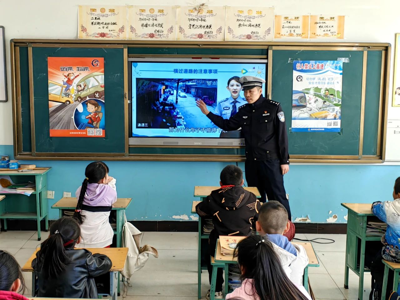 为加强校园交通安全宣传教育,提高广大中小学生交通安全防范意识和自我保护能力,减少未成年人道路交通事故的发生,山西高速交警五支队组织各大队民警分别走进辖区周边幼儿园、中小学,开展了形式多样的交通安全宣传活动,活动中通过课堂讲解、播放视频、有奖问答、张贴海报、手势操互动等方式,有效引导同学们自觉遵守交通法律法规,切实增强同学们的道路交通安全意识。