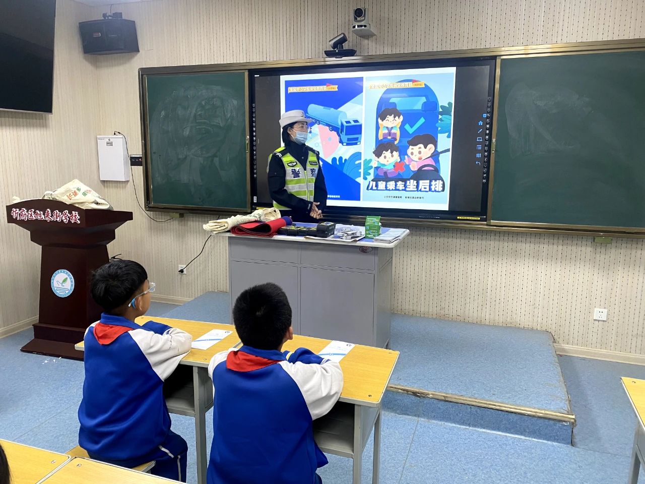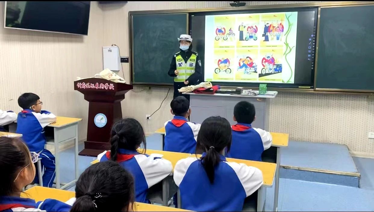 六大队组织民警走进忻府区旭来街学校开展交通安全宣传教育活动。在课堂上辅警通过PPT方式向学生们宣讲交通安全知识,积极与学生们进行互动发放交通安全主题宣传品,引导学生从小树立文明守法,安全出行的交通安全意识,并结合学生日常生活中常见交通事故案例,提醒学生出行时要自觉遵守交通规则,防止因一时疏忽造成意外交通事故发生。