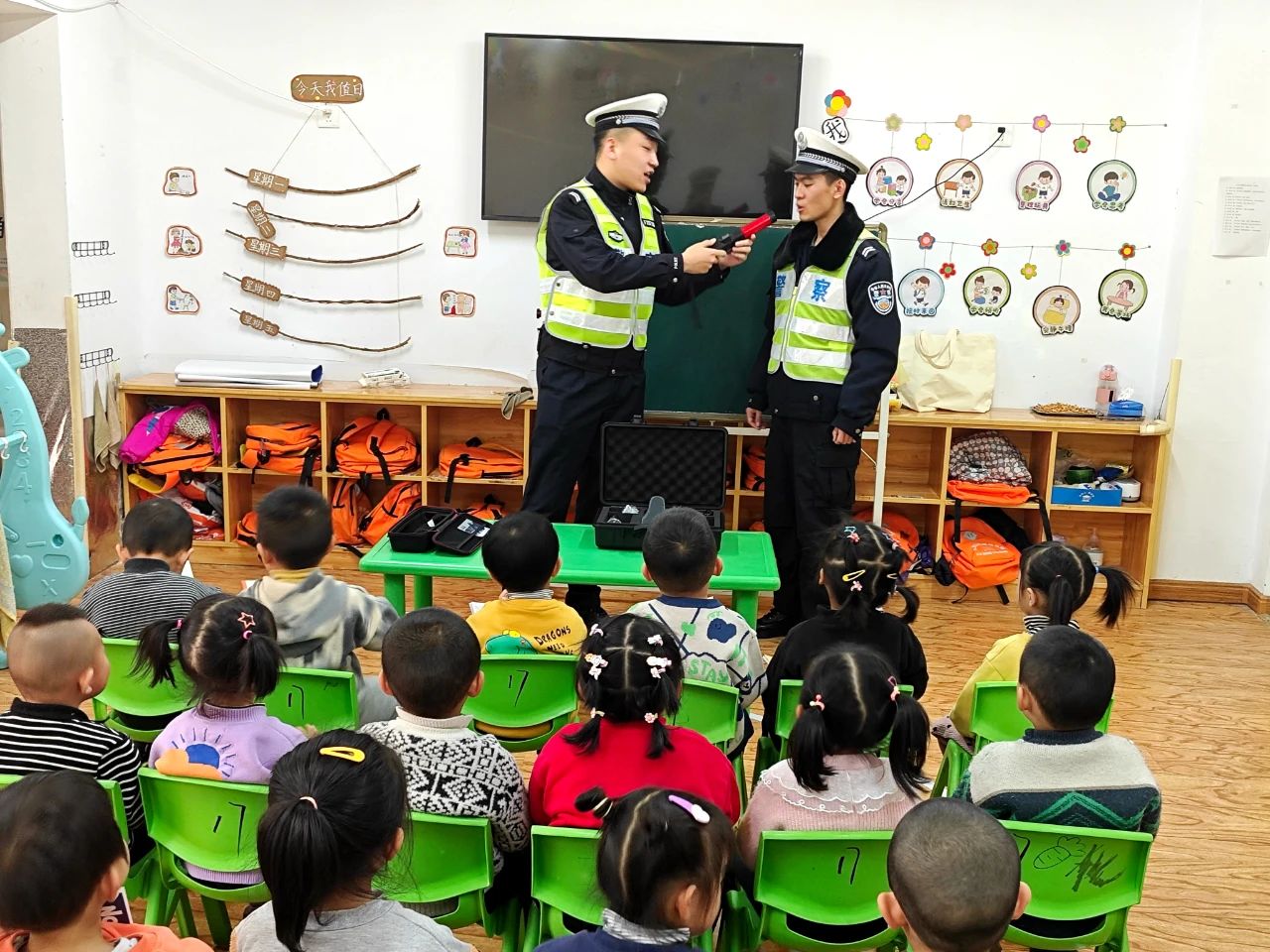 七大队走进五台山实验幼儿园,为孩子们开展了以“知危险、会避险,被看见、才安全”为主题的交通安全教育活动。民警结合幼儿园孩子们的身心特点,通过海报讲解,现场抢答的方式,与孩子们进行互动,并叮嘱孩子们要养成良好交通习惯,争做文明的道路交通参与者、宣传员。
