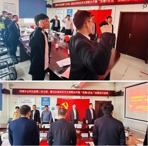 安全生产,责重山岳,安全生产须臾不可放松。中建七局四公司河南分公司总部第二党支部和豫北区域项目党支部紧扣生产实际,以强化“项目党员干部安全责任意识、提高项目党员干部安全生产技能”为目标,3月29日在焦作沁苑社区项目部联合开展了“党建引领聚合力 互促共建保安全”主题党日活动,深入落实“安全管理强化年”“安全责任深化年”各项任务,不断推动项目党员干部职工在一线工作中发挥先锋模范作用,充分发挥党支部的工作优势,切实提升党建引领安全作用。