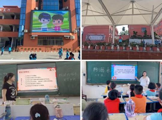播放宣传片,宣传防溺水。学校早饭后通过电子大屏幕滚动播放“防溺水”动画宣传片(小学生版),组织学生观看,进一步强化学生的防溺水安全知识教育。