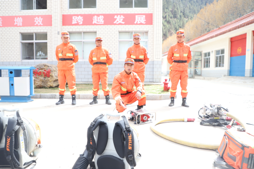 “斯蒂尔风力灭火机具备风力强劲、重量轻、振动低、操作简便……”三级消防士德西占堆正在为护林员们详细讲解各类灭火装备的用途、性能、以及各类参数。