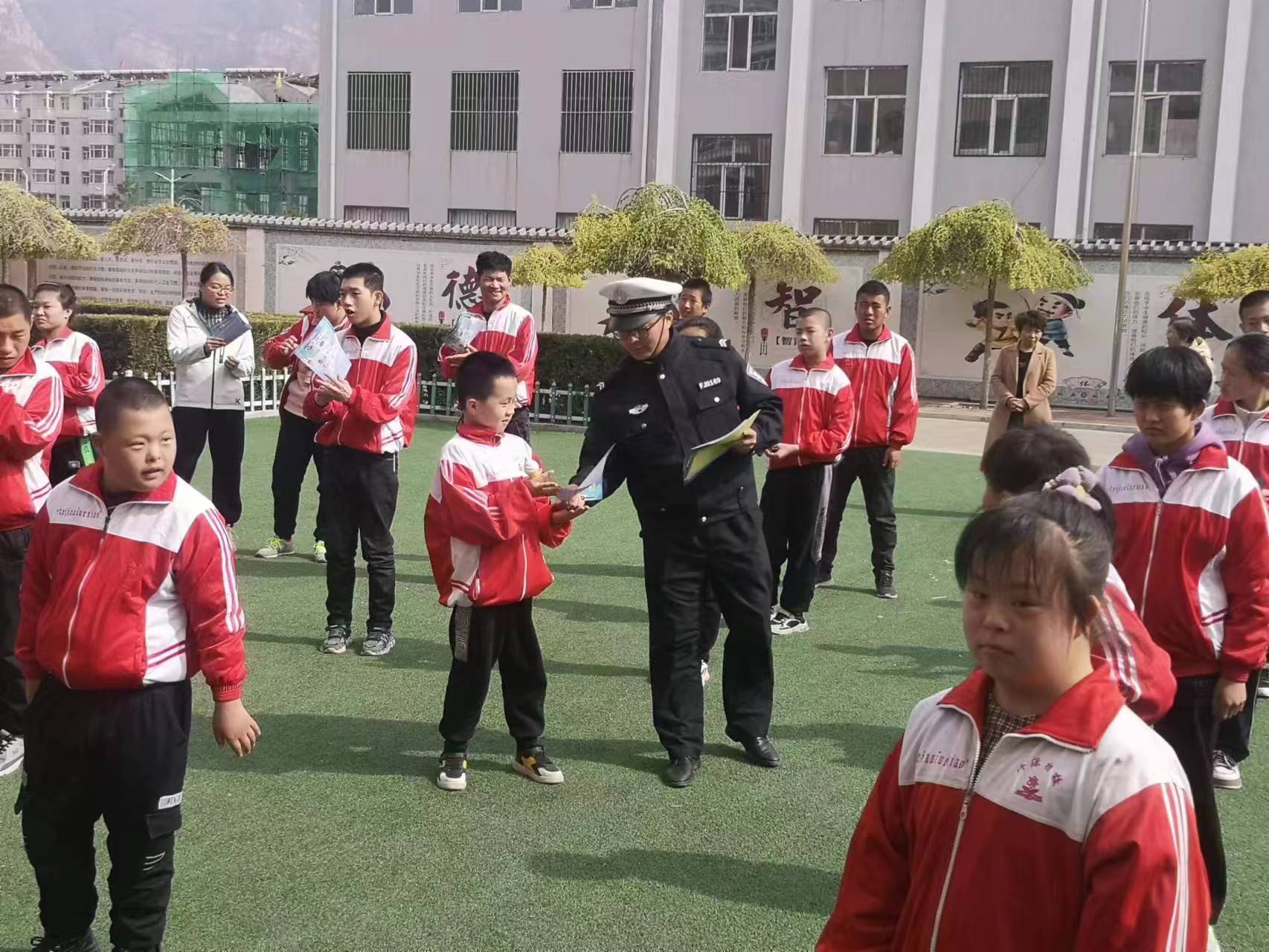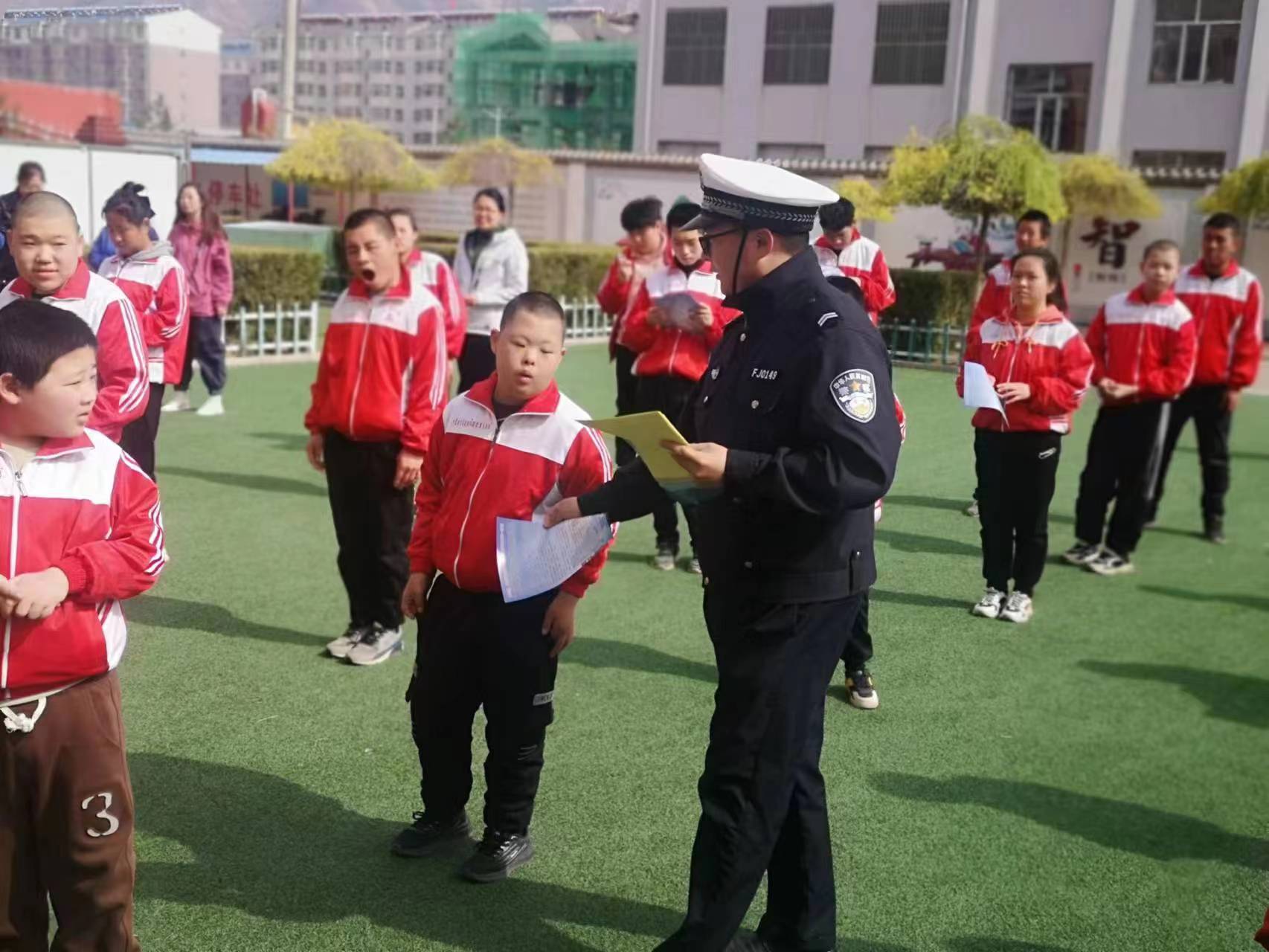 为提高聋哑、智力障碍等特殊儿童的交通安全意识,预防和减少特殊儿童道路交通事故伤害,4月26日下午,山西省大同市浑源县公安局交通管理大队指挥中心组织民辅警走进县特殊教育学校,为该校师生送去丰富的交通安全知识。