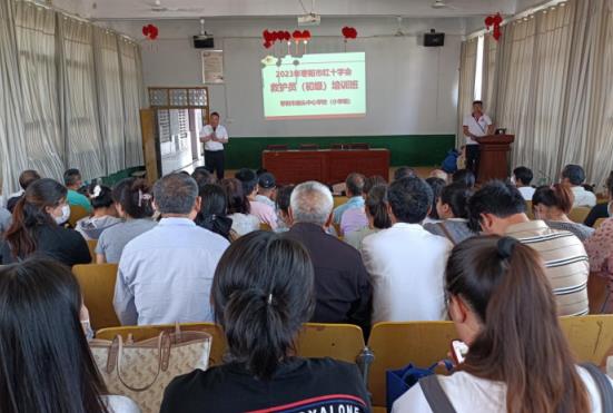 为普及应急救护基本知识和技能,全面提升教师校园和社会应急救护能力。5月20日,枣阳市鹿头镇中心学校邀请枣阳市红十字会佘金龙教官一行来校开展2023年红十字初级救护员培训。全镇中小学及幼儿园教师共计140余人参加此次培训。