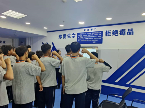 参观结束后,师生举行了禁毒宣誓:“从我做起,从现在做起,珍爱生命,远离毒品,保证不吸毒、不贩毒、不制毒、不种毒、主动参与禁毒宣传教育活动,自觉抵制毒品侵蚀,坚决与毒品作斗争,我将履行禁毒誓言,为国家禁毒事业做出自己应有的贡献。”师生们高举右拳郑重宣誓,并在禁毒倡议签名墙上签名。