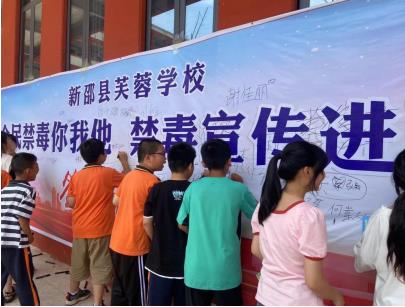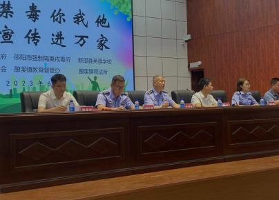“6、26”国际禁毒日来临之际,为深入开展禁毒宣传“进校园”活动,持续强化毒品预防教育工作,普及禁毒法律法规及禁毒常识,增强学生的防毒、拒毒意识,6月15日,湖南新邵县酿溪镇政府联合邵阳市强制戒毒所、司法所、酿溪镇禁毒分会、酿溪镇教育督管办、在该镇芙蓉学校开展了“全民禁毒你我他 禁毒宣传进万家”宣传教育活动。