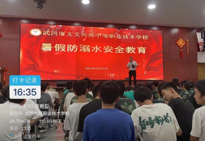 为了更好地加强学校暑期的防溺水安全教育工作,不断强化广大师生、家长的安全意识,预防溺水事故发生,6月23日下午16点,武冈市文兴邦职校在大礼堂召开暑期防溺水安全推进会,全体学校领导、各班主任及全体学生参加了会议。