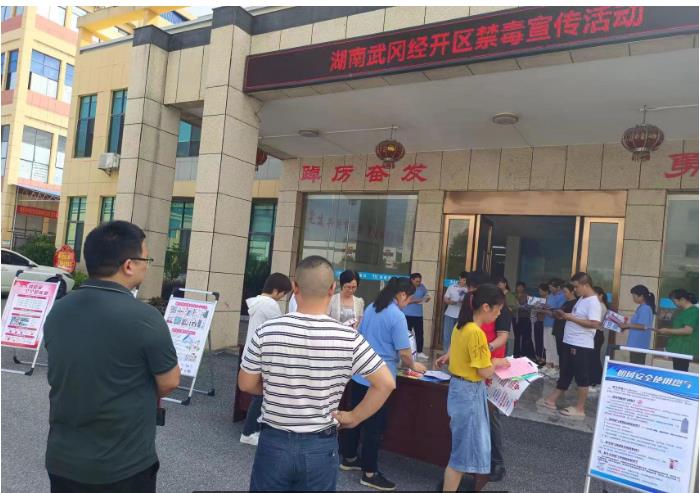 全民毒品预防教育工作既是与严峻毒情形势作斗争的切实需要,又是深化“禁毒人民战争”的有力保障。武冈经开区高度重视,成立由党委书记蒋兴杰为组长,副主任为副组长,各局室负责人为成员的禁毒宣传月活动领导工作小组。活动当天,经开区主任苏中冬带领志愿者来到利鑫塑料公司内。