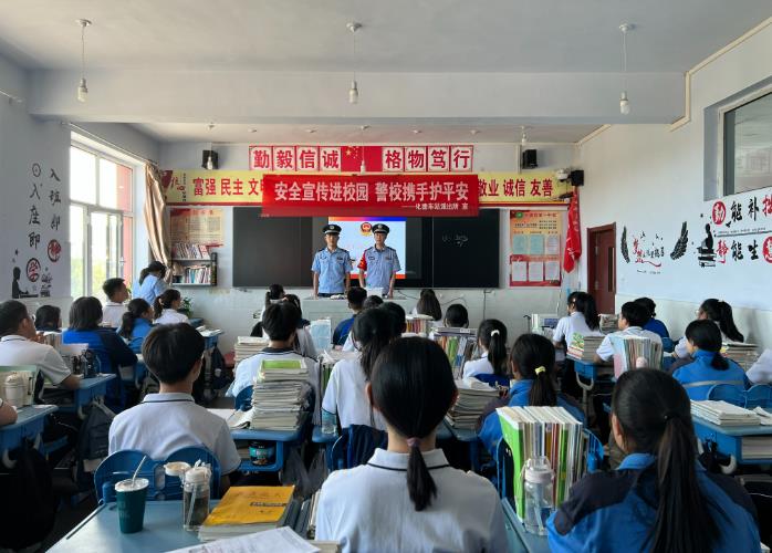 为切实提升铁路沿线中小学生的铁路安全意识和自我防护能力,2023年7月5日,锡林浩特铁路公安处化德车站派出所民警来到化德县第一中学开展法制安全宣传教育活动。